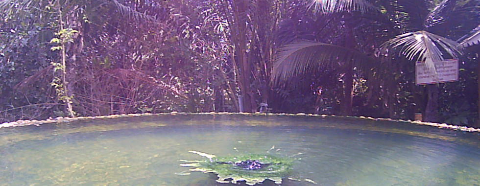 I made good progress and so arrived at the springs by 2 pm but I though the place was closed down. The car park was empty, the shop disused and the ticket counter unmanned. There was a woman sweeping the car park who came over to take my money. She couldn't give me change for a 1,000 baht note (about £25) so cleaned me out of all my small notes and coins to pay to get in and grab a drink.