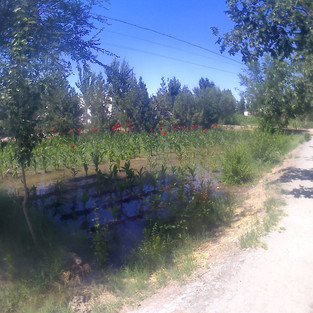 At one point the Turkmenistan border pushed close to the road down a river I was crossing and I saw a dirt track off to the side to when to investigate. I passed a cow herder who gesticulated that the way was closed but I pushed on regardless until I eventually came to a deep ditch and a fence that ran to the river's edge closing off this secretive state.